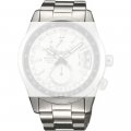 Esta bracelete de relógio Orient é feita de aço inoxidável e está fixada ao relógio através de pinos de pressão. A bracelete tem uma largura de 22 mm e fecha através de fivela dobrável com botões de pressão. A bracelete não tem uma montagem a direito, o que significa que esta bracelete só é adequada para os relógios listados abaixo.