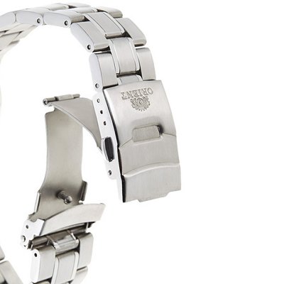 Este relógio Orient tem uma caixa de Inox com um diâmetro de 41.5 mm e está equipado com uma bracelete de metal. A caixa possui um movimento Orient e o relógio tem um vidro Mineral.