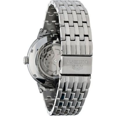 Este relógio Orient tem uma caixa de Inox com um diâmetro de 42.4 mm e está equipado com uma bracelete de metal. A caixa possui um movimento Orient e o relógio tem um vidro Safira.