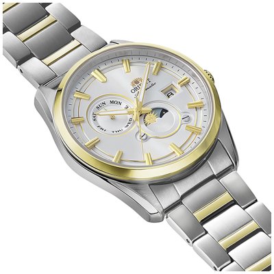 Este relógio Orient tem uma caixa de Inox com um diâmetro de 41 mm e está equipado com uma bracelete de Inox. A caixa possui um movimento Epson e o relógio tem um vidro Safira.