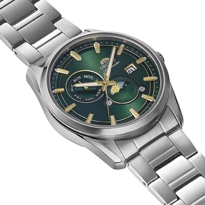 Este relógio Orient tem uma caixa de Inox com um diâmetro de 41 mm e está equipado com uma bracelete de Inox. A caixa possui um movimento Epson e o relógio tem um vidro Safira.