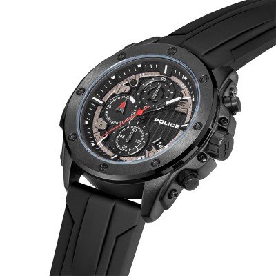 Este relógio Police tem uma caixa de Liga de Metal com um diâmetro de 50 mm e está equipado com uma bracelete de borracha. A caixa possui um movimento Sunon e o relógio tem um vidro Mineral.