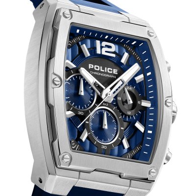 Este relógio Police tem uma caixa de Inox com um diâmetro de 42 mm e está equipado com uma bracelete de borracha. A caixa possui um movimento Seiko Instruments Inc. e o relógio tem um vidro Mineral.