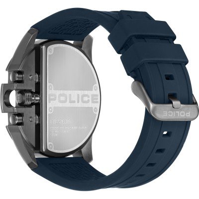 Este relógio Police tem uma caixa de Inox com um diâmetro de 48 mm e está equipado com uma bracelete de borracha. A caixa possui um movimento Seiko Instruments Inc. e o relógio tem um vidro Mineral.