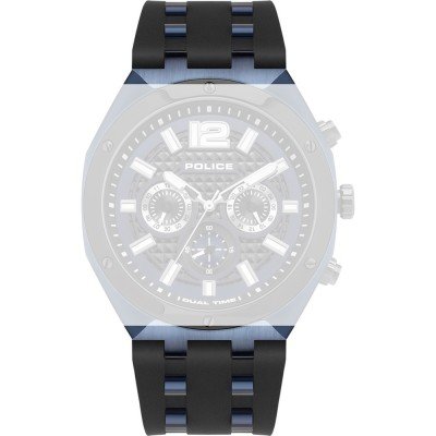 Esta bracelete de relógio Police é feita de silicone e está fixada ao relógio através de pinos em aço. A bracelete tem uma largura de 24 mm e fecha através de fecho. A bracelete não tem uma montagem a direito, o que significa que esta bracelete só é adequada para os relógios listados abaixo.