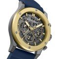 Este relógio Police tem uma caixa de Inox com um diâmetro de 42 mm e está equipado com uma bracelete de borracha. A caixa possui um movimento Seiko e o relógio tem um vidro Mineral.