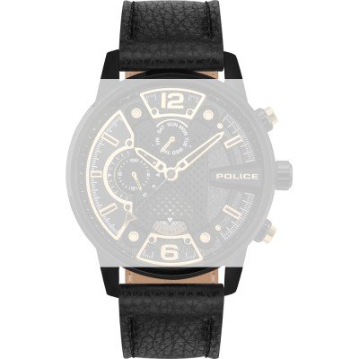 Esta bracelete de relógio Police é feita de couro e está fixada ao relógio através de pinos de pressão. A bracelete tem uma largura de 24 mm. A bracelete tem uma montagem a direito, o que significa que esta bracelete é adequada para todos os relógios Police com montagem da bracelete a direito.