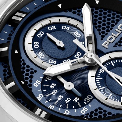 Este relógio Police tem uma caixa de Inox com um diâmetro de 43 mm e está equipado com uma bracelete de Inox. A caixa possui um movimento Seiko Instruments Inc. e o relógio tem um vidro Mineral.