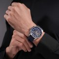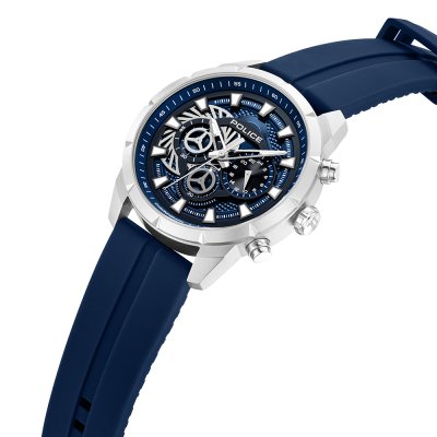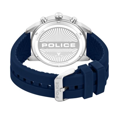 Este relógio Police tem uma caixa de Inox com um diâmetro de 45 mm e está equipado com uma bracelete de borracha. A caixa possui um movimento Seiko Instruments Inc. e o relógio tem um vidro Mineral.