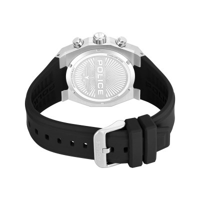 Este relógio Police tem uma caixa de Inox com um diâmetro de 46 mm e está equipado com uma bracelete de borracha. A caixa possui um movimento Seiko Instruments Inc. e o relógio tem um vidro Mineral.