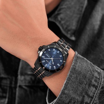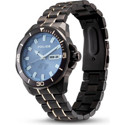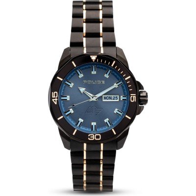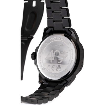 Este relógio Police tem uma caixa de Inox com um diâmetro de 43 mm e está equipado com uma bracelete de metal. A caixa possui um movimento Miyota e o relógio tem um vidro Mineral.