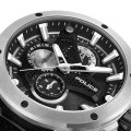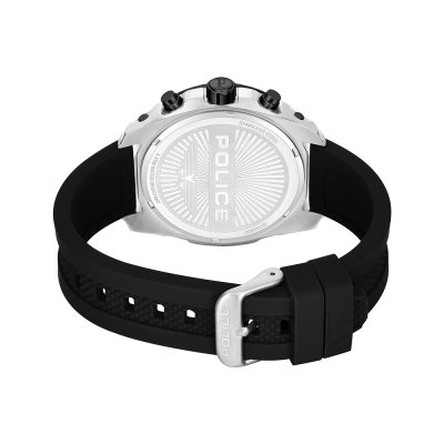 Este relógio Police tem uma caixa de Inox com um diâmetro de 45 mm e está equipado com uma bracelete de borracha. A caixa possui um movimento Seiko Instruments Inc. e o relógio tem um vidro Mineral.