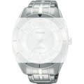 Esta bracelete de relógio Pulsar é feita de aço inoxidável e está fixada ao relógio através de pinos de pressão. A bracelete tem uma largura de 22 mm e fecha através de fivela dobrável com botões de pressão. A bracelete não tem uma montagem a direito, o que significa que esta bracelete só é adequada para os relógios listados abaixo.