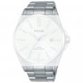 Esta bracelete de relógio Pulsar é feita de aço inoxidável e está fixada ao relógio através de pinos de pressão. A bracelete tem uma largura de 22 mm e fecha através de fivela dobrável com botões de pressão. A bracelete não tem uma montagem a direito, o que significa que esta bracelete só é adequada para os relógios listados abaixo.