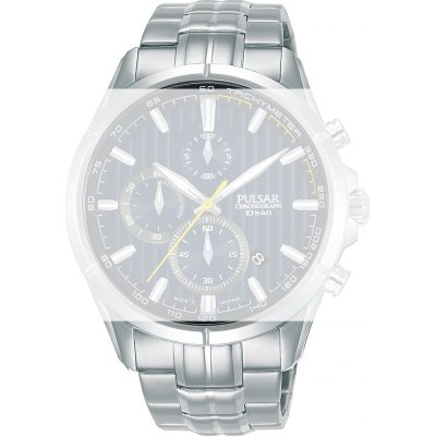 Esta bracelete de relógio Pulsar é feita de aço inoxidável e está fixada ao relógio através de pinos de pressão. A bracelete tem uma largura de 22 mm e fecha através de fivela dobrável com botões de pressão. A bracelete não tem uma montagem a direito, o que significa que esta bracelete só é adequada para os relógios listados abaixo.