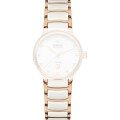Esta bracelete de relógio Rado é feita de aço inoxidável e cerâmica e está fixada ao relógio através de pinos em aço. A bracelete tem uma largura de 17 mm e fecha através de fivela butterfly com botões de pressão. A bracelete não tem uma montagem a direito, o que significa que esta bracelete só é adequada para os relógios listados abaixo.