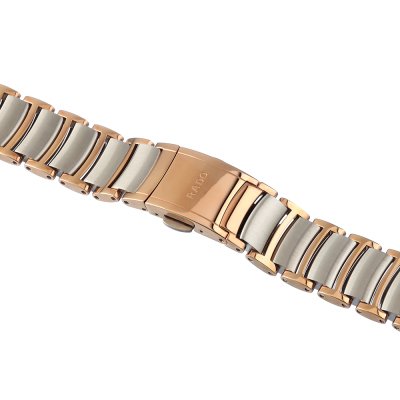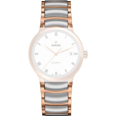 Esta bracelete de relógio Rado é feita de aço inoxidável e está fixada ao relógio através de pino e tubo. A bracelete tem uma largura de 14 mm e fecha através de fivela dobrável com botões de pressão. A bracelete não tem uma montagem a direito, o que significa que esta bracelete só é adequada para os relógios listados abaixo.