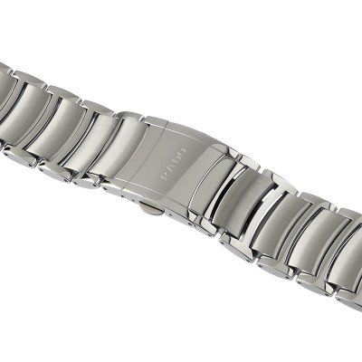 Esta bracelete de relógio Rado é feita de aço inoxidável e está fixada ao relógio através de pino e tubo. A bracelete tem uma largura de 22 mm e fecha através de fivela dobrável com botões de pressão. A bracelete não tem uma montagem a direito, o que significa que esta bracelete só é adequada para os relógios listados abaixo.