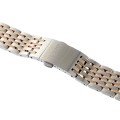 Esta bracelete de relógio Rado é feita de aço inoxidável e está fixada ao relógio através de pinos de pressão. A bracelete tem uma largura de 21 mm e fecha através de fivela dobrável com botões de pressão. A bracelete não tem uma montagem a direito, o que significa que esta bracelete só é adequada para os relógios listados abaixo.