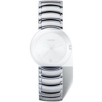 Esta bracelete de relógio Rado é feita de aço inoxidável e está fixada ao relógio através de parafusos. A bracelete tem uma largura de 20 mm e fecha através de fivela butterfly invisível. A bracelete não tem uma montagem a direito, o que significa que esta bracelete só é adequada para os relógios listados abaixo.