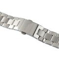 Esta bracelete de relógio Rado é feita de aço inoxidável e está fixada ao relógio através de pinos de pressão. A bracelete tem uma largura de 19 mm e fecha através de fivela dobrável com botões de pressão. A bracelete não tem uma montagem a direito, o que significa que esta bracelete só é adequada para os relógios listados abaixo.