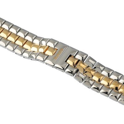 Esta bracelete de relógio Rado é feita de aço inoxidável e está fixada ao relógio através de pinos de pressão. A bracelete tem uma largura de 18 mm e fecha através de fivela butterfly invisível. A bracelete não tem uma montagem a direito, o que significa que esta bracelete só é adequada para os relógios listados abaixo.