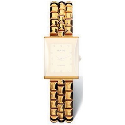 Esta bracelete de relógio Rado é feita de aço inoxidável e está fixada ao relógio através de pinos de pressão. A bracelete tem uma largura de 13 mm e fecha através de fivela butterfly invisível. A bracelete não tem uma montagem a direito, o que significa que esta bracelete só é adequada para os relógios listados abaixo.