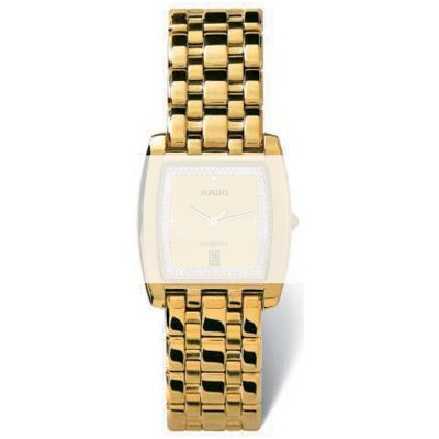 Esta bracelete de relógio Rado é feita de aço inoxidável e está fixada ao relógio através de pino e tubo. A bracelete tem uma largura de 19 mm e fecha através de fivela butterfly com botões de pressão. A bracelete não tem uma montagem a direito, o que significa que esta bracelete só é adequada para os relógios listados abaixo.