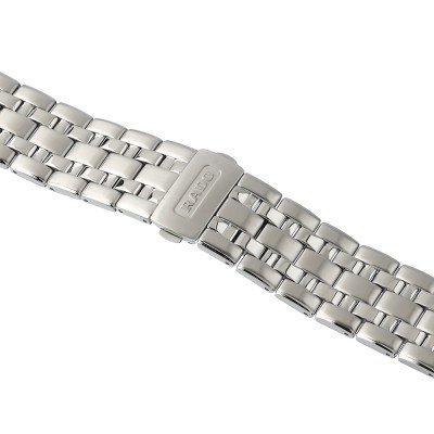 Esta bracelete de relógio Rado é feita de aço inoxidável e está fixada ao relógio através de pino e tubo. A bracelete tem uma largura de 19 mm e fecha através de fivela dobrável com botões de pressão. A bracelete não tem uma montagem a direito, o que significa que esta bracelete só é adequada para os relógios listados abaixo.