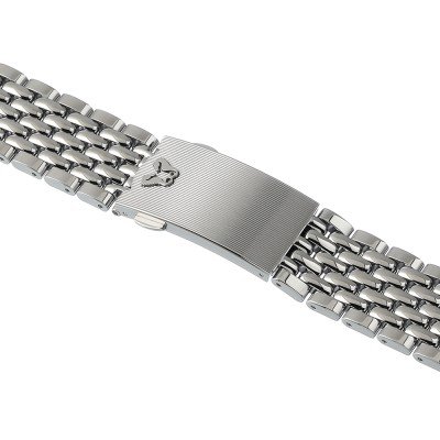 Esta bracelete de relógio Rado é feita de aço inoxidável e está fixada ao relógio através de pinos de pressão. A bracelete tem uma largura de 19 mm e fecha através de fivela dobrável com botões de pressão. A bracelete não tem uma montagem a direito, o que significa que esta bracelete só é adequada para os relógios listados abaixo.