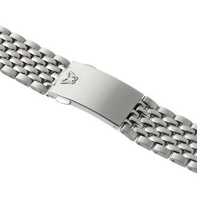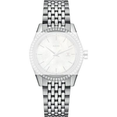 Esta bracelete de relógio Rado é feita de aço inoxidável e está fixada ao relógio através de pinos carregados por mola de liberação rápida. A bracelete tem uma largura de 18 mm e fecha através de fivela dobrável com botões de pressão. A bracelete não tem uma montagem a direito, o que significa que esta bracelete só é adequada para os relógios listados abaixo.