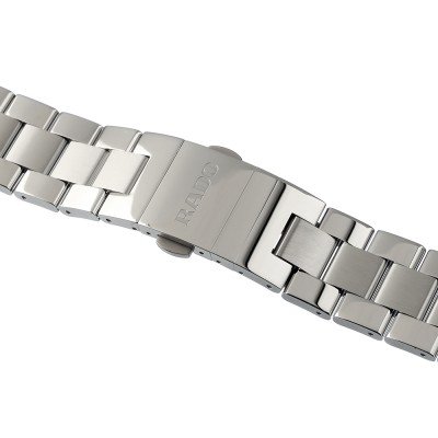Esta bracelete de relógio Rado é feita de aço inoxidável e está fixada ao relógio através de pinos de pressão. A bracelete tem uma largura de 21 mm e fecha através de fivela dobrável com botões de pressão. A bracelete não tem uma montagem a direito, o que significa que esta bracelete só é adequada para os relógios listados abaixo.
