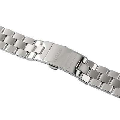 Esta bracelete de relógio Rado é feita de aço inoxidável e está fixada ao relógio através de pinos de pressão. A bracelete tem uma largura de 16 mm e fecha através de fivela dobrável com botões de pressão. A bracelete não tem uma montagem a direito, o que significa que esta bracelete só é adequada para os relógios listados abaixo.