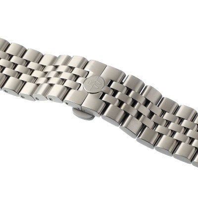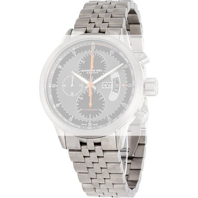 Esta bracelete de relógio Raymond Weil é feita de titânio e está fixada ao relógio através de pinos de pressão. A bracelete tem uma largura de 22 mm e fecha através de fivela butterfly com botões de pressão. A bracelete não tem uma montagem a direito, o que significa que esta bracelete só é adequada para os relógios listados abaixo.