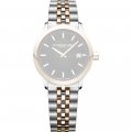 Esta bracelete de relógio Raymond Weil é feita de aço inoxidável e está fixada ao relógio através de pinos de pressão. A bracelete tem uma largura de 15 mm e fecha através de fivela butterfly com botões de pressão. A bracelete não tem uma montagem a direito, o que significa que esta bracelete só é adequada para os relógios listados abaixo.