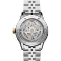 Esta última adição à gama Raymond Weil Freelancer combina a elegância clássica com o requinte moderno. O relógio possui um movimento mecânico de corda automática interno com uma reserva de marcha de 41 horas (RW4420). As extremidades da caixa de 40 mm são curvas para que o relógio assente confortavelmente no pulso, tal como a bracelete de estilo jubileu com fecho desdobrável de pressão dupla. As linhas mais estreitas da luneta e um acabamento polido de alto brilho, bem como o mostrador com efeito levemente raiado, aumentam a profundidade e o jogo dinâmico da luz. Os índices aplicados e os ponteiros refinados com Super-LumiNova branca asseguram uma legibilidade óptima, enquanto um subtil traço dos minutos posicionado na luneta interior completa o design harmonioso. A coroa aparafusada é gravada com um monograma RW e o movimento automático é revelado através do fundo de caixa em vidro de safira, mostrando um peso oscilante em forma de W - assinaturas distintivas da marca Raymond Weil.