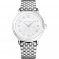 Esta bracelete de relógio Raymond Weil é feita de aço inoxidável e está fixada ao relógio através de pinos de pressão. A bracelete tem uma largura de 22 mm e fecha através de fivela butterfly com botões de pressão. A bracelete não tem uma montagem a direito, o que significa que esta bracelete só é adequada para os relógios listados abaixo.