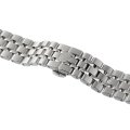 Esta bracelete de relógio Raymond Weil é feita de aço inoxidável e está fixada ao relógio através de pinos de pressão. A bracelete tem uma largura de 20 mm e fecha através de fivela butterfly com botões de pressão. A bracelete não tem uma montagem a direito, o que significa que esta bracelete só é adequada para os relógios listados abaixo.
