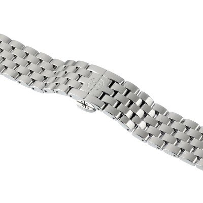 Esta bracelete de relógio Raymond Weil é feita de aço inoxidável e está fixada ao relógio através de pinos de pressão. A bracelete tem uma largura de 20 mm e fecha através de fivela butterfly com botões de pressão. A bracelete não tem uma montagem a direito, o que significa que esta bracelete só é adequada para os relógios listados abaixo.