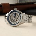 Este relógio Roamer tem uma caixa de Inox com um diâmetro de 43 mm e está equipado com uma bracelete de Inox. A caixa possui um movimento Soprod e o relógio tem um vidro Safira.