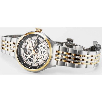 Este relógio Roamer tem uma caixa de Inox com um diâmetro de 43 mm e está equipado com uma bracelete de Inox. A caixa possui um movimento Soprod e o relógio tem um vidro Safira.