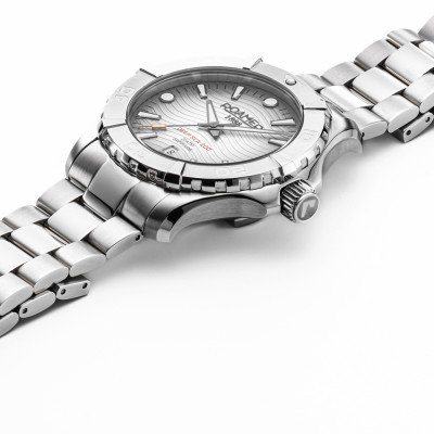 Este relógio Roamer tem uma caixa de Inox com um diâmetro de 43 mm e está equipado com uma bracelete de Inox. A caixa possui um movimento Ronda e o relógio tem um vidro Safira anti-reflexo única.