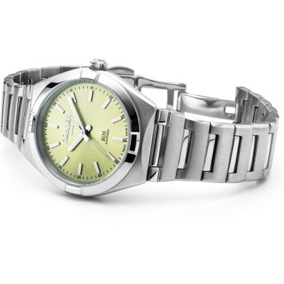 Este relógio Roamer tem uma caixa de Inox com um diâmetro de 34 mm e está equipado com uma bracelete de Inox. A caixa possui um movimento Ronda e o relógio tem um vidro Safira.