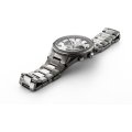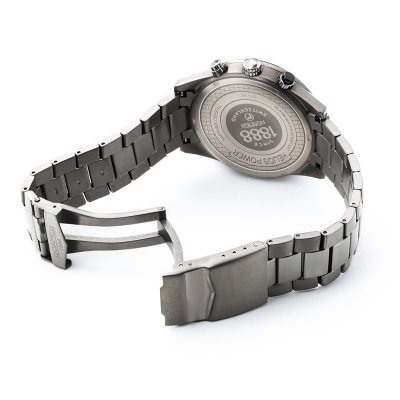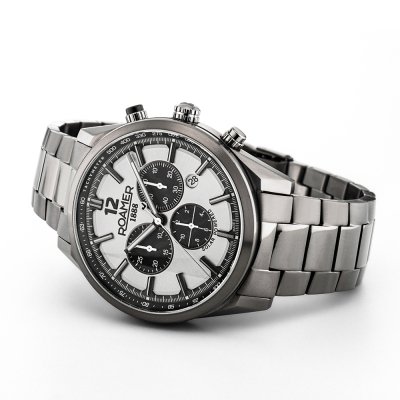 Este relógio Roamer tem uma caixa de Inox com um diâmetro de 43.5 mm e está equipado com uma bracelete de Inox. A caixa possui um movimento Casio e o relógio tem um vidro Safira.
