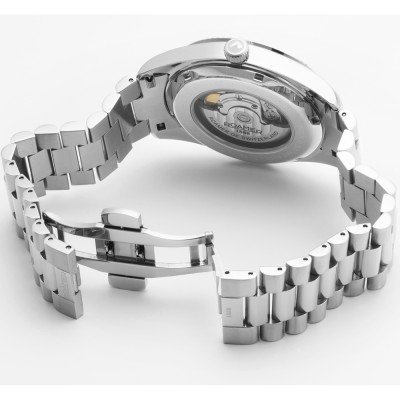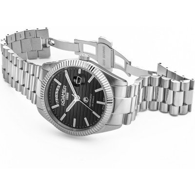 Este relógio Roamer tem uma caixa de Inox com um diâmetro de 42 mm e está equipado com uma bracelete de Inox. A caixa possui um movimento Sellita e o relógio tem um vidro Safira.