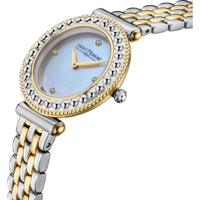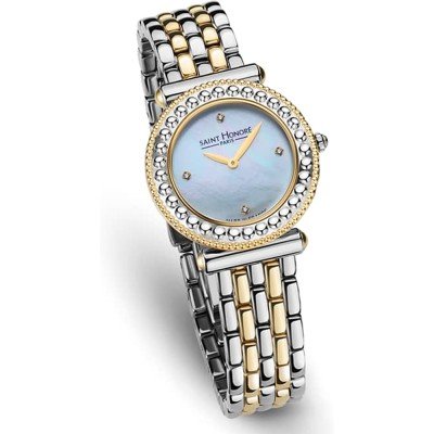 Este relógio Saint Honoré tem uma caixa de Inox com um diâmetro de 29 mm e está equipado com uma bracelete de Inox. A caixa possui um movimento Ronda e o relógio tem um vidro Mineral.