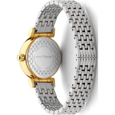 Este relógio Saint Honoré tem uma caixa de Inox com um diâmetro de 26 mm e está equipado com uma bracelete de Inox. A caixa possui um movimento Ronda e o relógio tem um vidro Mineral.
