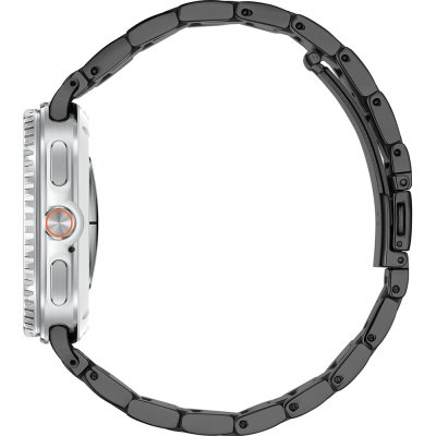 Este relógio Samsung tem uma caixa de Alumínio com um diâmetro de 46 mm e está equipado com uma bracelete de Couro sobre silicone. A caixa possui um movimento Samsung e o relógio tem um vidro Safira.
