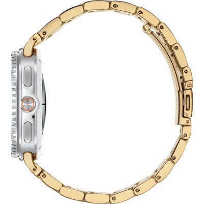 Este relógio Samsung tem uma caixa de Alumínio com um diâmetro de 46 mm e está equipado com uma bracelete de Couro sobre silicone. A caixa possui um movimento Samsung e o relógio tem um vidro Safira.