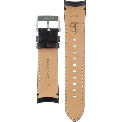 Esta bracelete de relógio Scuderia Ferrari é feita de couro e está fixada ao relógio através de pinos de pressão. A bracelete tem uma largura de 24 mm e fecha através de fecho. A bracelete não tem uma montagem a direito, o que significa que esta bracelete só é adequada para os relógios listados abaixo.